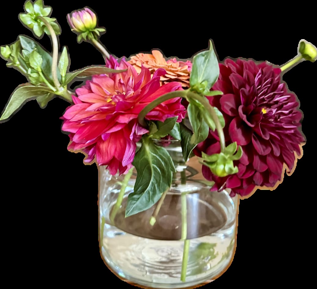 This week’s arrangement that I assembled for my coffee table — fresh, locally grown dahlias and zinnias 😍