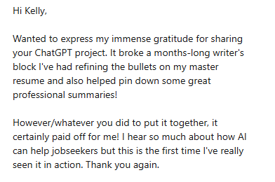 The GPT will translate your messy thoughts into polished, one-sentence impact bullets that ready for your resume, LinkedIn, or performance review.